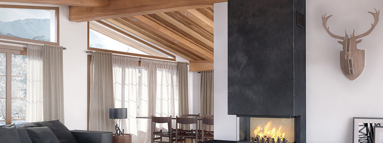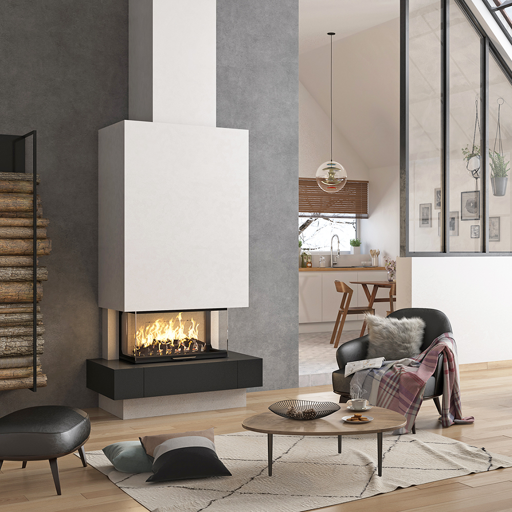 Per gli amanti delle fiamme, innamorati di questo camino a legna con 3 vetri per goderti lo spettacolo del fuoco da tutte le angolazioni. Il suo vetro serigrafato nero sottolinea elegantemente la semplicità delle sue linee.