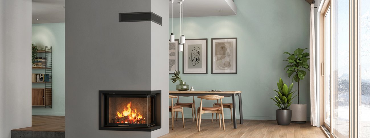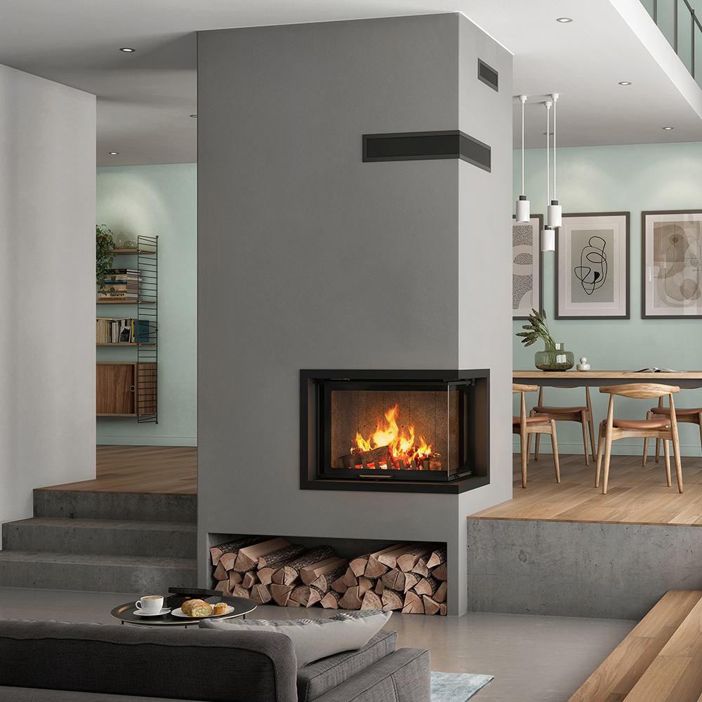Oltre alla sua grande visione del fuoco, questo camino è compatibile con le nuove abitazioni RT2012 grazie alla sua tenuta, offre una doppia combustione pulita per prestazioni ottimizzate e profondità ridotta per un ingombro ridotto. Ha anche la tecnologia di ribaltamento della porta dall'alto, per godersi lo spettacolo delle fiamme a lungo termine.